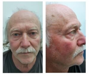 He returned a few months later because his skin had deteriorated. He was washing his face with hot water and soap. I advised him to use a gentle body wash cleanser, and his skin improved.