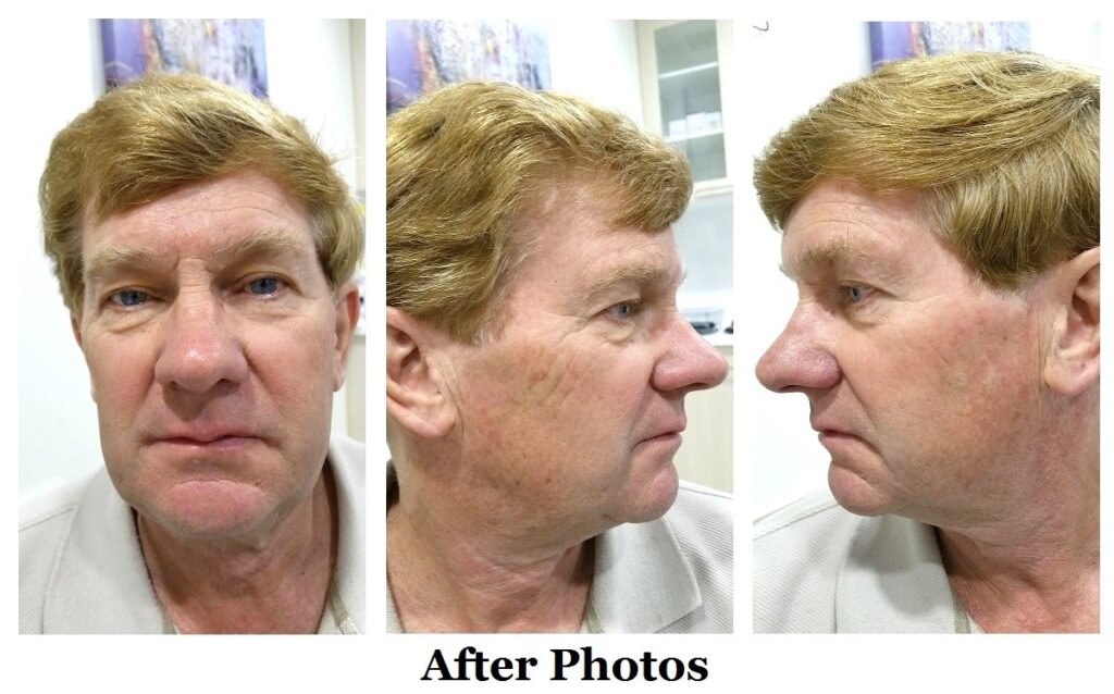 These follow-up photos taken two months later show significant improvement with his skin looking smoother, more “alive” and less inflamed.