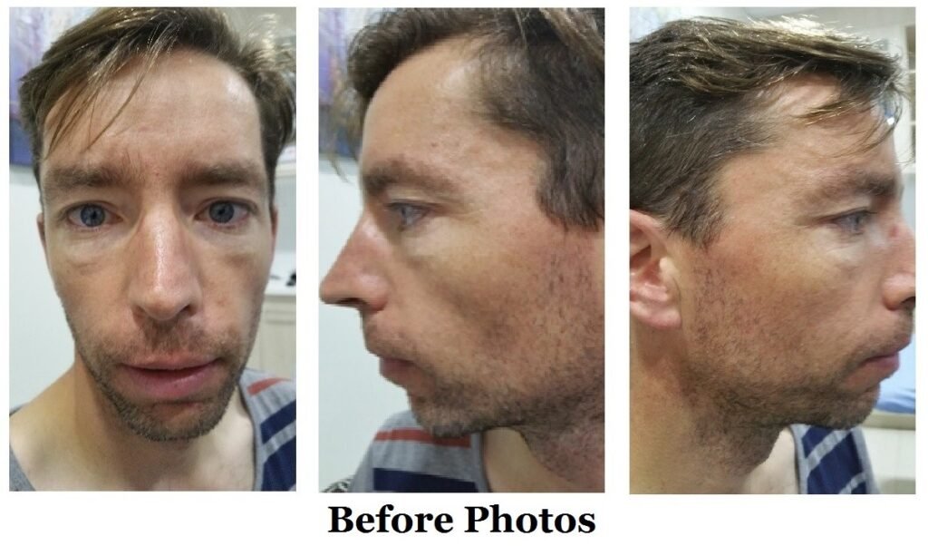 This 34-year-old, very fit man does a lot of bicycle riding and sailing. As you can see from the first photos, he already has sun-induced damage to his face with pigmentation and early fine lines and wrinkles.